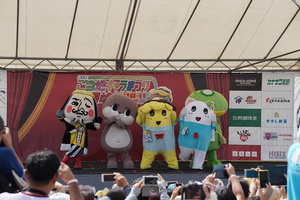 10日のオープニング。ご当地キャラたちに囲まれて須崎市長が挨拶をしました。