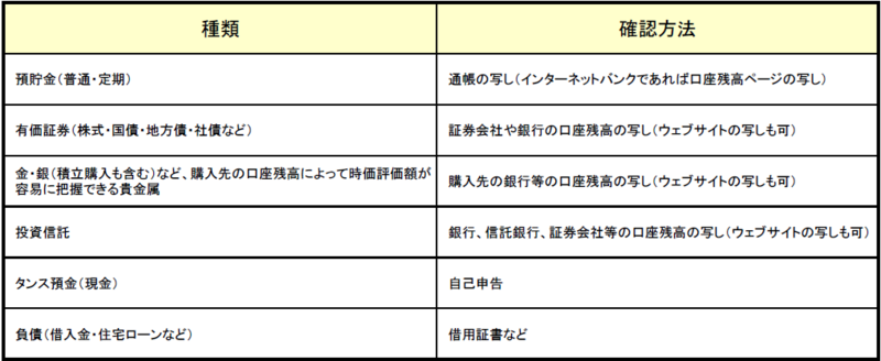 預貯金の対象となるものおよび提出書類は下記表のとおりです。