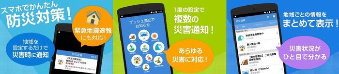 防災速報アプリから通知を受け取るための初期設定は下の「防災速報アプリの初期設定」を参照してください。