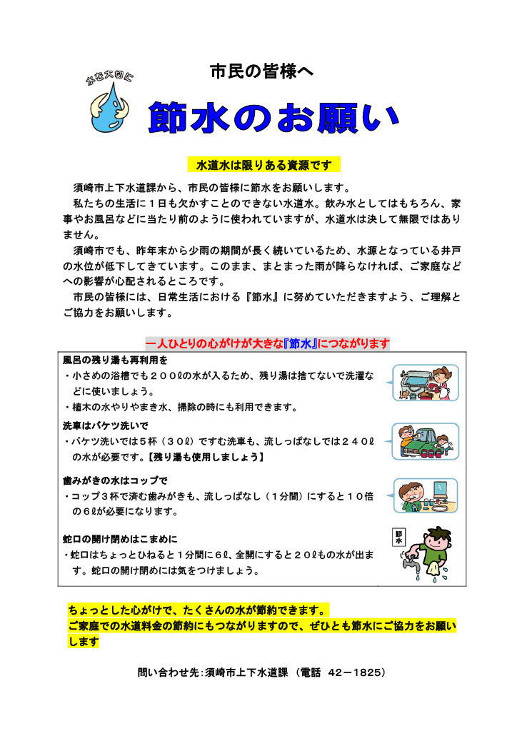 市民の皆様へ 節水のお願い