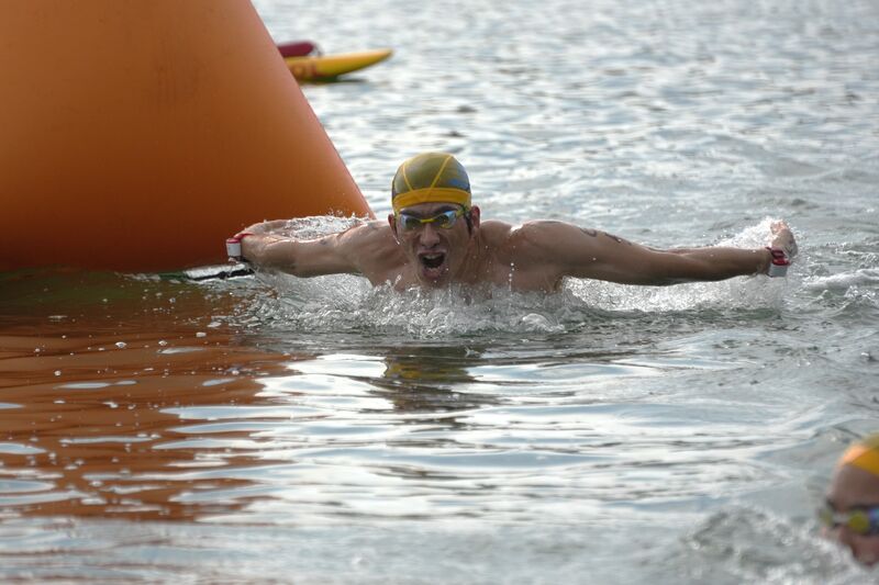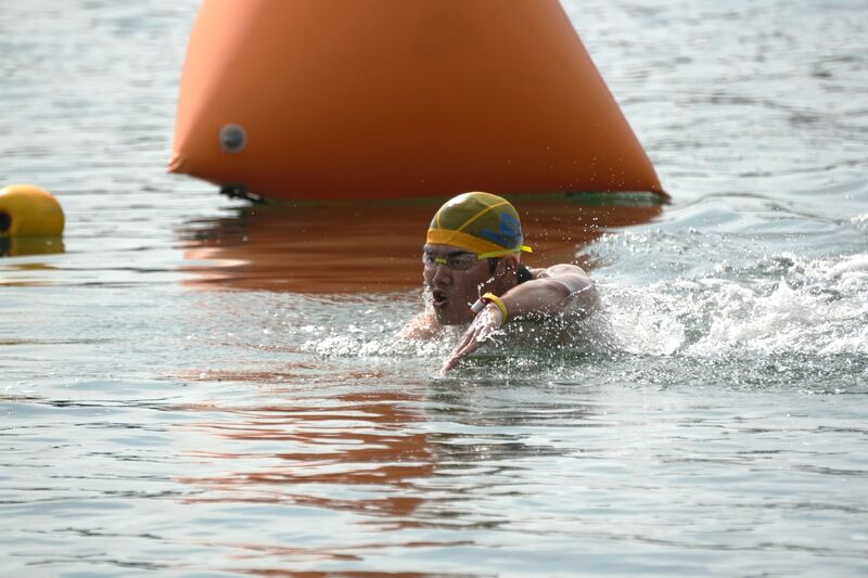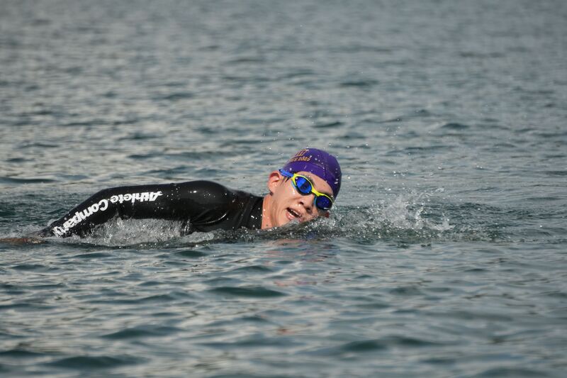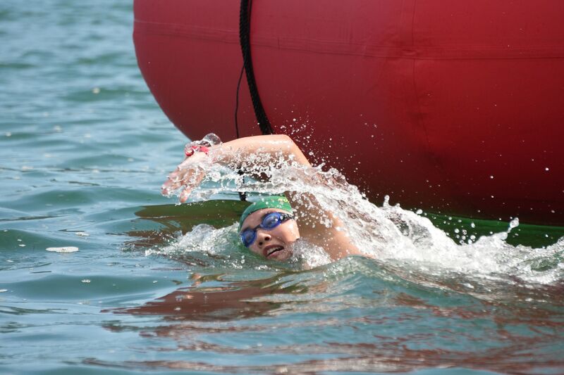 ▲他の選手より一分一秒でも早くゴールできるよう、力の限り泳ぎます!