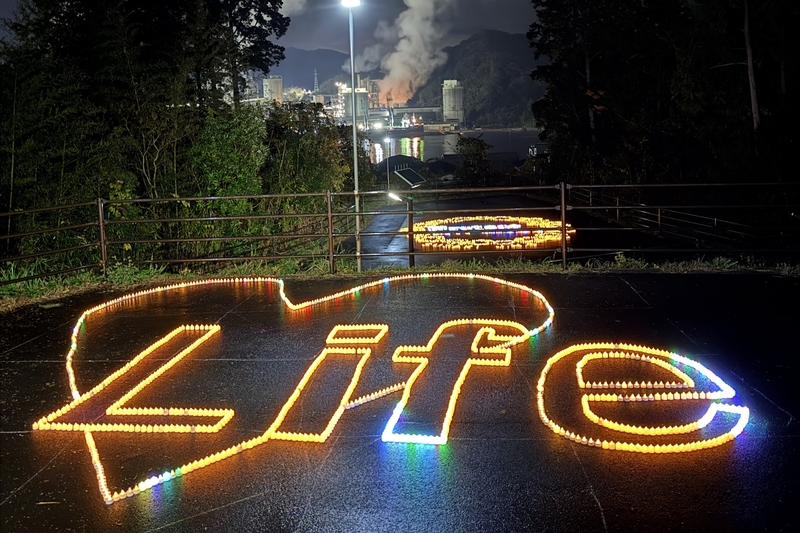 また、城山公園避難道や南古市町津波避難施設では、イルミネーションやキャンドルライトによるライトアップを実施し、須崎小学校・須崎中学校・須崎総合高校・高知大学・太平洋学園高校の生徒や留学生の皆さん、そして地域住民の皆さんのご協力により、幻想的な光に包まれた避難路が生まれました。