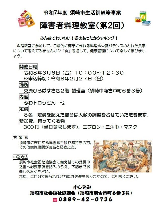 【参加者募集】障がいのある方の料理教室のご案内