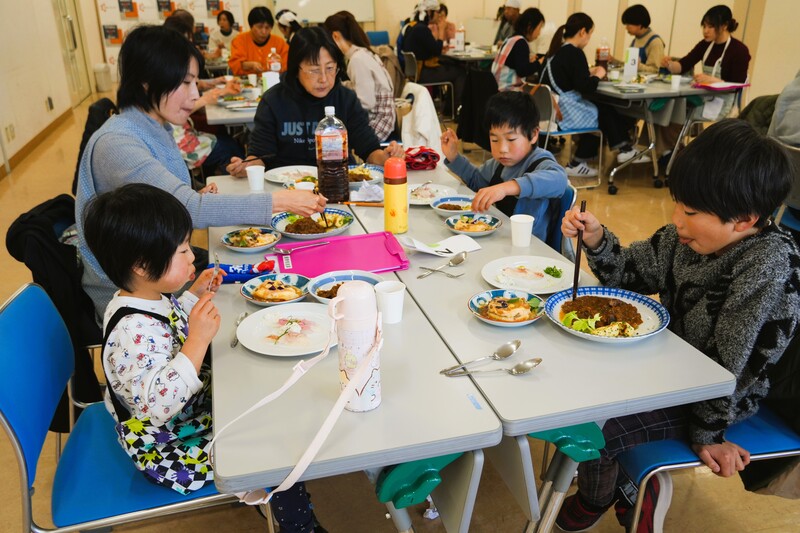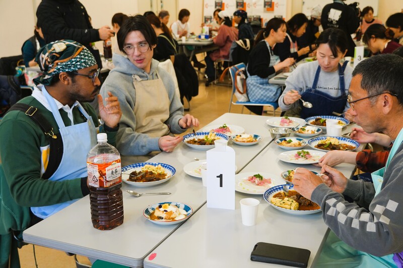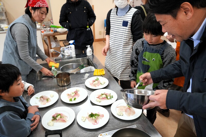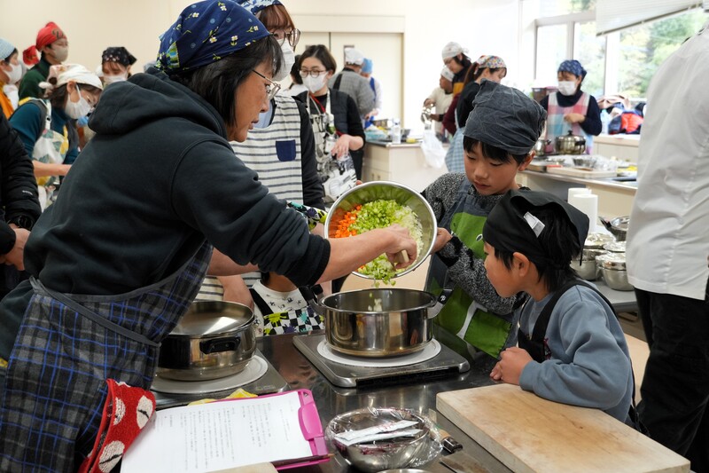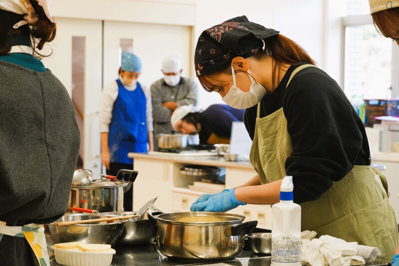 ▲シェフに教わりながら、班の皆さんと協力して調理をされていました。