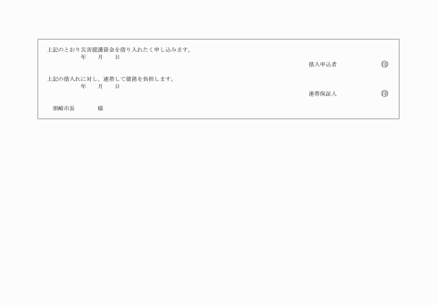 第6条 災害援護資金(以下「資金」という。)の貸付けを受けようとする者(以下「借入申込者」という。)は、次に掲げる事項を記載した借入申込書(別記様式第2号)を市長に提出しなければならない。