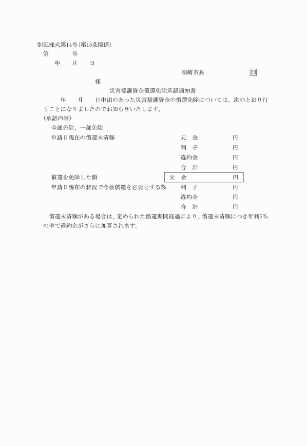 3 市長は、償還の免除を認める旨を決定したときは、償還免除承認通知書(別記様式第14号)を、当該償還免除申請者に交付するものとする。