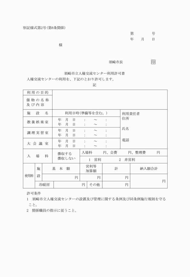 ○須崎市立人権交流センターの設置及び管理に関する条例施行規則