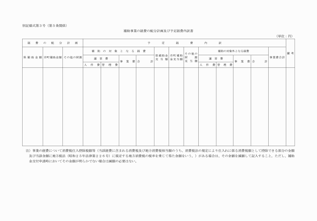 (2) 補助事業の経費の配分計画及び予定経費内訳書(別記様式第3号)