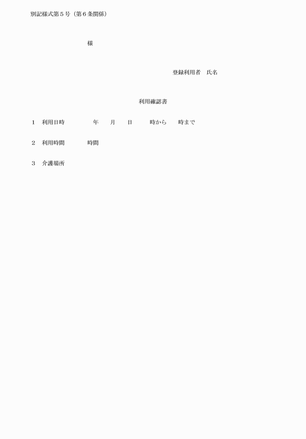 2 登録利用者又は登録利用者の保護者は、サービスの提供を受けたときは、利用確認書(別記様式第5号)に記入して、事業の実施を確認する。