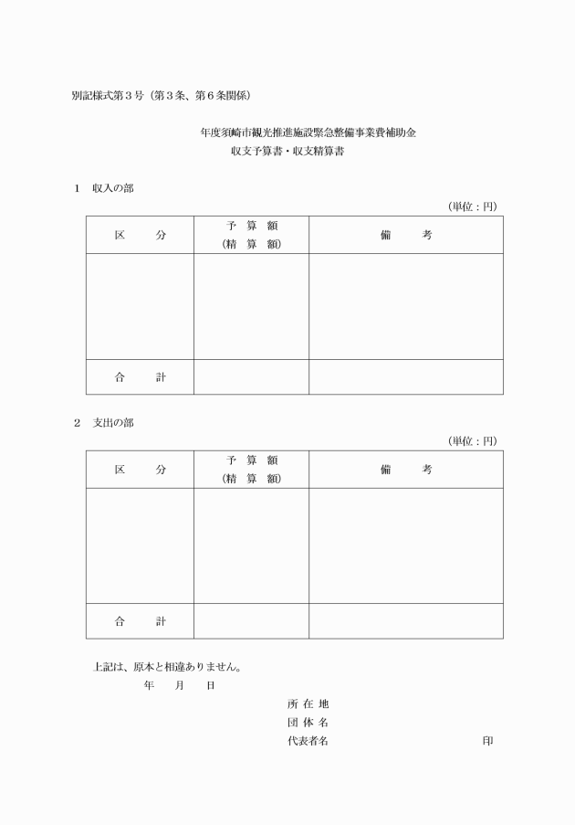 (2) 須崎市観光推進施設緊急整備事業費補助金収支精算書(別記様式第3号)