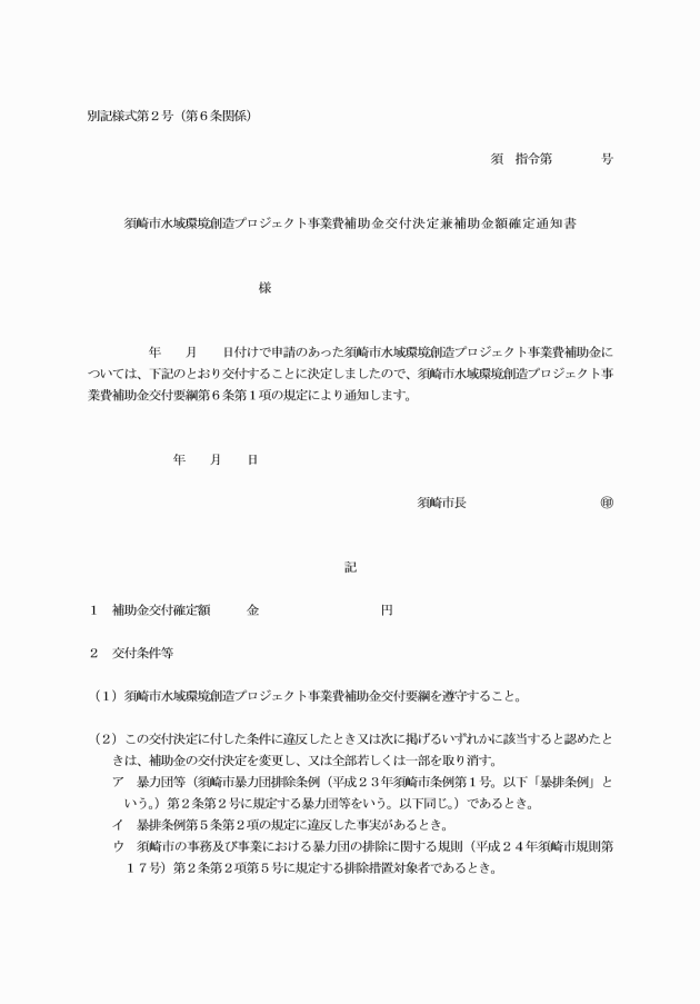 第1条 この要綱は、須崎市の水域における水質の浄化を行い、持続可能な環境を創造するため、予算の範囲内において須崎市水域環境創造プロジェクト事業費補助金(以下「補助金」という。)を交付することに関し、必要な事項を定めるものとする。